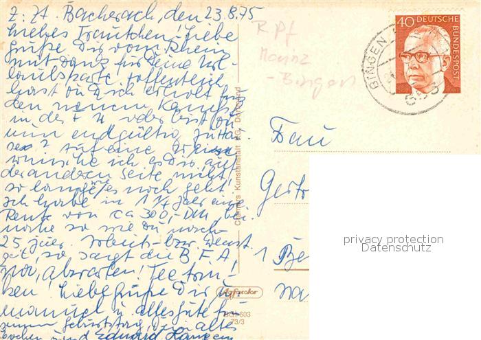 72890011 alte Postkarte Bacharach Rhein Ortsmotive Hotel Gelber Hof Binnenschiffahrt Dampfer Kahn postalisch gelaufen Erhaltung siehe scans [FriedD77] KatCode: 11110007339003