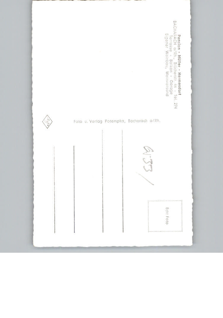 31146405 Bacharach Rhein Pension Mueller – Hermesdorf postalisch nicht gelaufen KatCode: 11110007339003