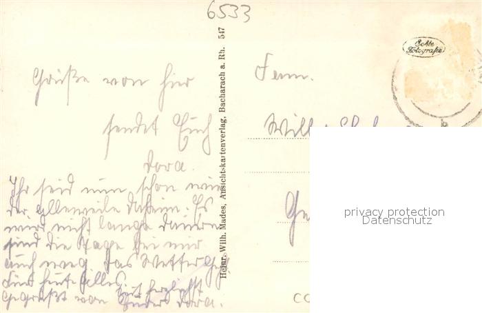 73691174 alte Postkarte Bacharach Rhein Rheinpromenade postalisch gelaufen Erhaltung siehe scans [FriedD77] KatCode: 11110007339003
