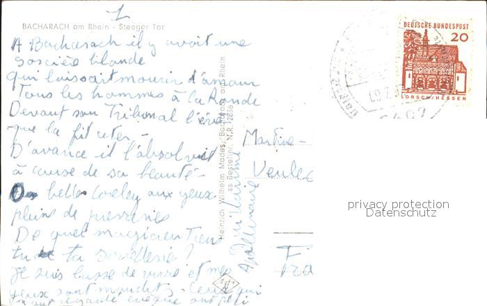 72396911 alte Postkarte Bacharach Rhein Steeger Tor postalisch gelaufen Erhaltung siehe scans KatCode: 11110007339003