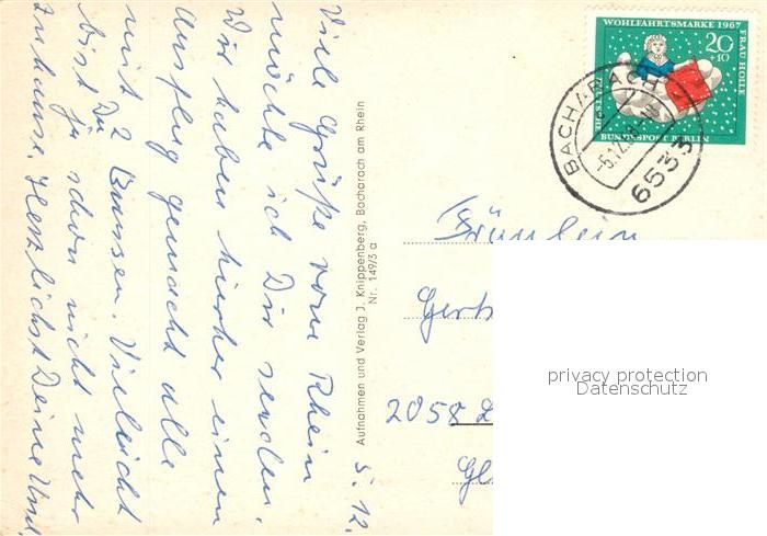 73060095 alte Postkarte Bacharach Rhein Teilansichten Rheinpartien postalisch gelaufen Erhaltung siehe scans [FriedD77] KatCode: 11110007339003