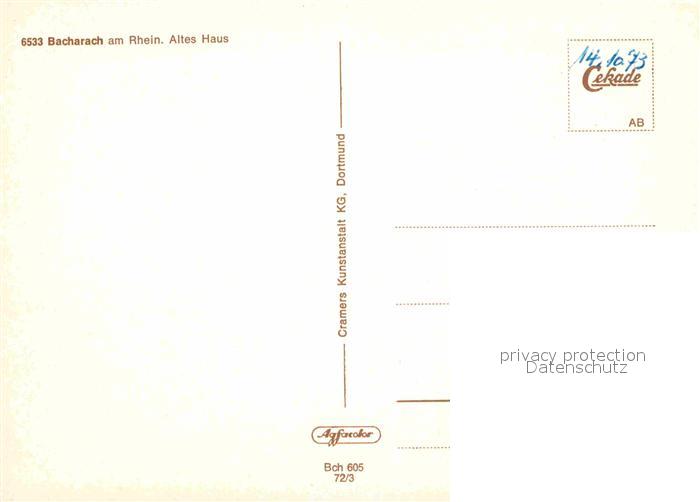 72785102 Bacharach Rhein Weinhaus Altes Haus Fachwerkhaus postalisch nicht gelaufen Erhaltung siehe scans [FriedD77] KatCode: 11110007339003