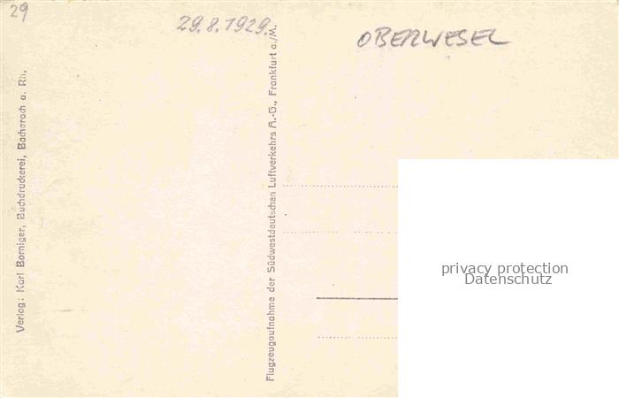 74095498 Bacharach Rheinland-Pfalz Fliegeraufnahme postalisch nicht gelaufen Erhaltung siehe scans [FriedD77] KatCode: 11110007339003