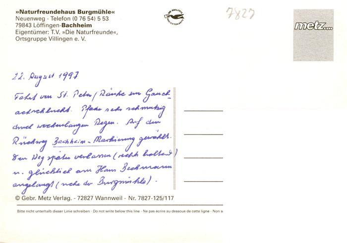 73931224 Bachheim Naturfreundehaus Burgmuehle postalisch nicht gelaufen Erhaltung siehe scans [WerneD78] KatCode: 11110008315070