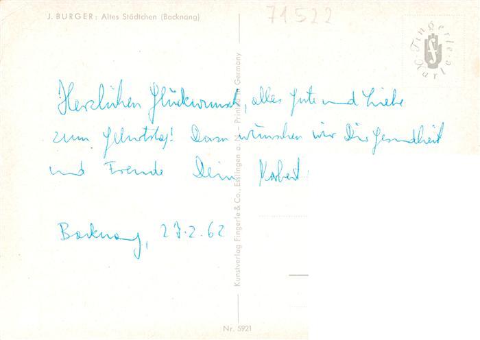 73900201 Backnang Altes Staedtchen Kuenstlerkarte postalisch nicht gelaufen Erhaltung siehe scans [WerneD78] KatCode: 11110008119008