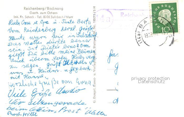 73317262 alte Postkarte Backnang Blick zur Burg Reichenberg postalisch gelaufen Erhaltung siehe scans [FriedD77] KatCode: 11110008119008