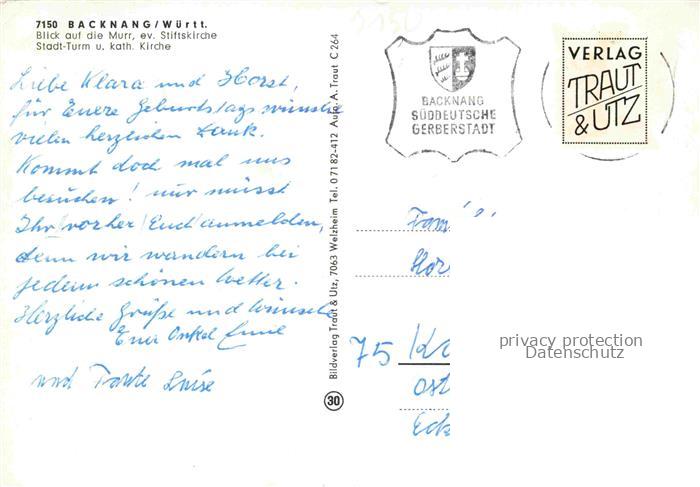 74052686 Backnang BW Murrpartie mit Stiftskirche und Stadtturm ev Kirche postalisch nicht gelaufen Erhaltung siehe scans [WerneD78] KatCode: 11110008119008