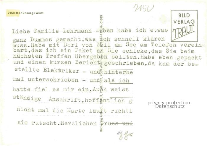74053222 Backnang BW Rathaus Murrpartie mit Stiftskirche Stadtturm Schwimmbad Telefunkenwerke Michaels Stadtturm postalisch nicht gelaufen Erhaltung siehe scans [WerneD78] KatCode: 11110008119008