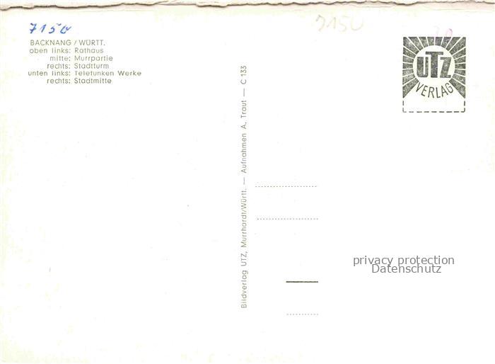 74052713 Backnang BW Rathaus Murrpartie Stadtturm Telefunkenwerke Stadtmitte postalisch nicht gelaufen Erhaltung siehe scans [WerneD78] KatCode: 11110008119008