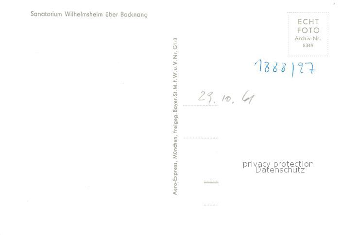 73171747 Backnang Fliegeraufnahme Sanatorium Wilhelmsheim postalisch nicht gelaufen Erhaltung siehe scans [NatalD47] KatCode: 11110008119008