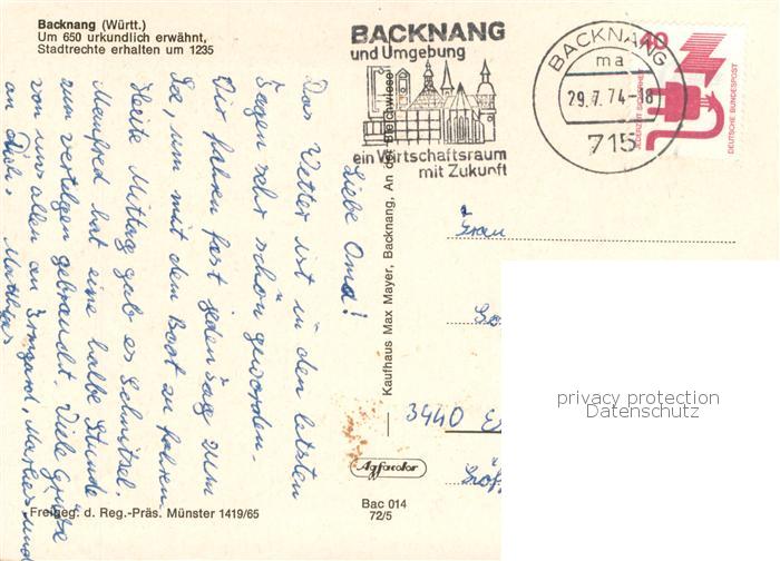 73782992 alte Postkarte Backnang Fliegeraufnahme postalisch gelaufen Erhaltung siehe scans [WerneD78] KatCode: 11110008119008