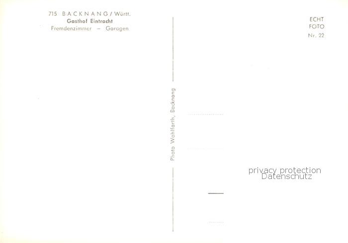 73852612 Backnang Gasthof Eintracht postalisch nicht gelaufen Erhaltung siehe scans [WerneD78] KatCode: 11110008119008