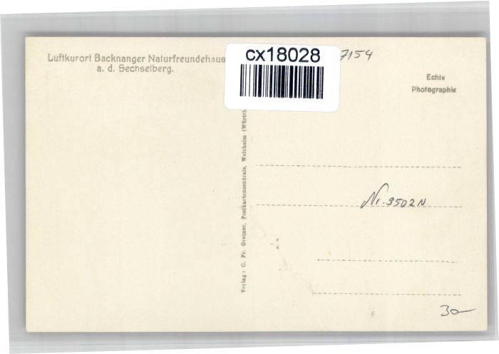 30725618 Backnang Naturfreundehaus postalisch nicht gelaufen KatCode: 11110008119008