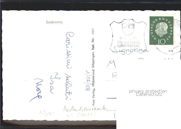 72145219 alte Postkarte Backnang Strassenpartie postalisch gelaufen Erhaltung siehe scans KatCode: 11110008119008