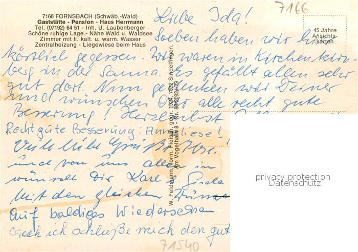 73792999 Backnang Waldsee u. Gaststaette-Pension Haus Herrmann postalisch nicht gelaufen Erhaltung siehe scans [LiesaD40] KatCode: 11110008119008
