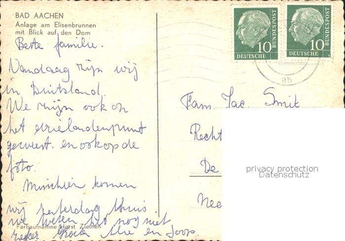 72283503 alte Postkarte Bad Aachen Anlage Elisenbrunnen Dom postalisch gelaufen Erhaltung siehe scans KatCode: 11110005313000