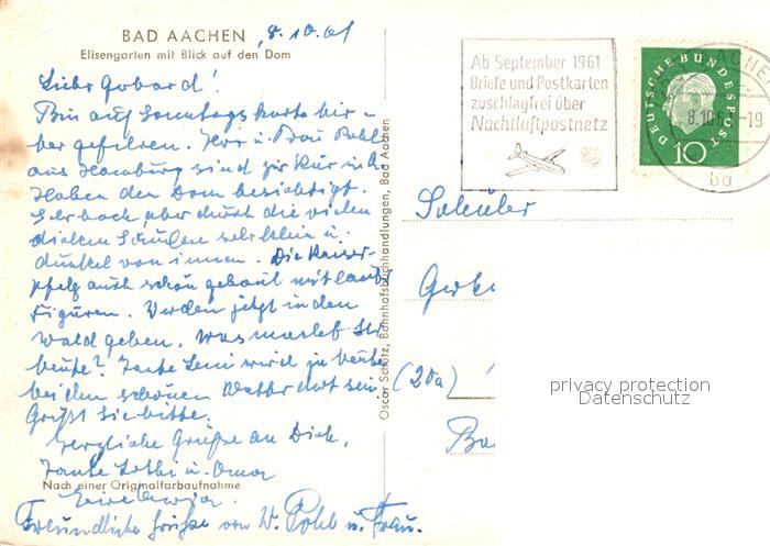 72962617 alte Postkarte Bad Aachen Elisengarten Dom postalisch gelaufen Erhaltung siehe scans [NatalD47] KatCode: 11110005313000