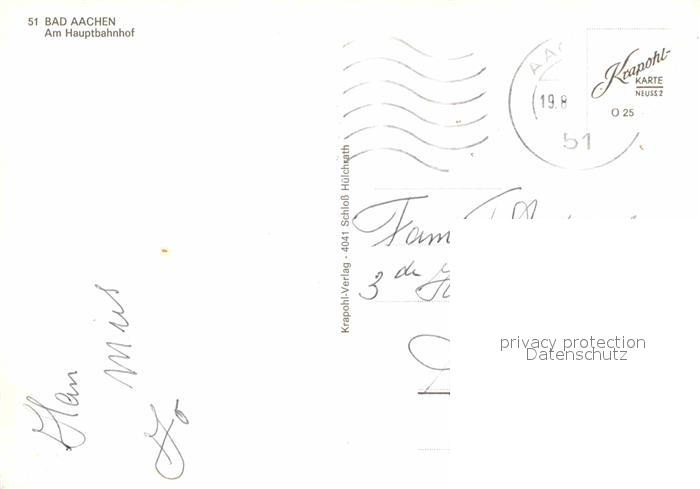 72845284 alte Postkarte Bad Aachen Hauptbahnhof postalisch gelaufen Erhaltung siehe scans [NatalD47] KatCode: 11110005313000