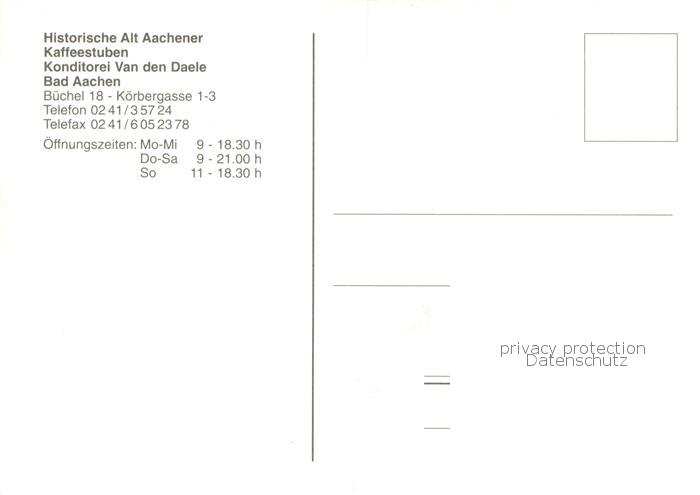 73757292 Bad Aachen Historische Alt Achener Kaffeestuben Konditorei Van den Daele postalisch nicht gelaufen Erhaltung siehe scans [WerneD78] KatCode: 11110005313000