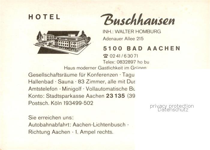 73759810 alte Postkarte Bad Aachen Hotel Buschhausen Minigolf Hallenbad Gastraum postalisch gelaufen Werbekarte (keine Postkarte) Erhaltung siehe scans [FriedD77] KatCode: 11110005313000