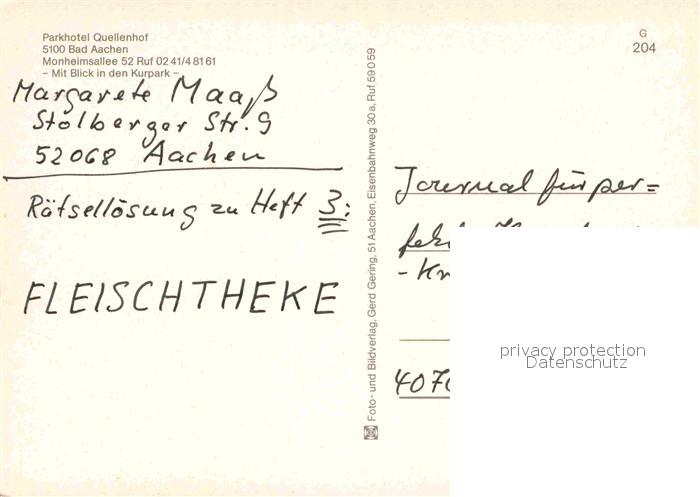 72896680 Bad Aachen Parkhotel Quellenhof postalisch nicht gelaufen Erhaltung siehe scans [AndreD76] KatCode: 11110005313000