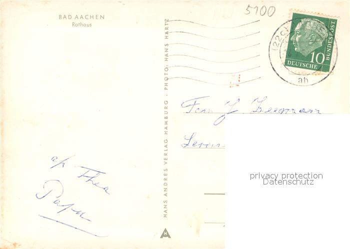 73694830 alte Postkarte Bad Aachen Rathaus Brunnen postalisch gelaufen Erhaltung siehe scans [LiesaD40] KatCode: 11110005313000