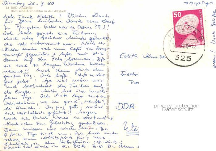 72618095 alte Postkarte Bad Aachen Roemische Architektur postalisch gelaufen Erhaltung siehe scans [NatalD47] KatCode: 11110005313000