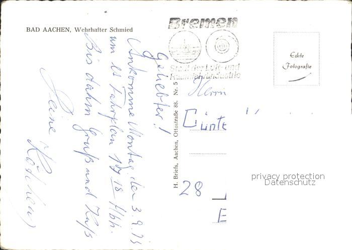 72395300 alte Postkarte Bad Aachen Wehrhafter Schmied Brunnen Statue postalisch gelaufen Erhaltung siehe scans KatCode: 11110005313000