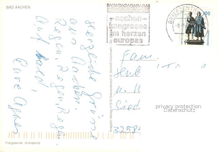 73122051 alte Postkarte Bad Aachen postalisch gelaufen Erhaltung siehe scans [NatalD47] KatCode: 11110005313000