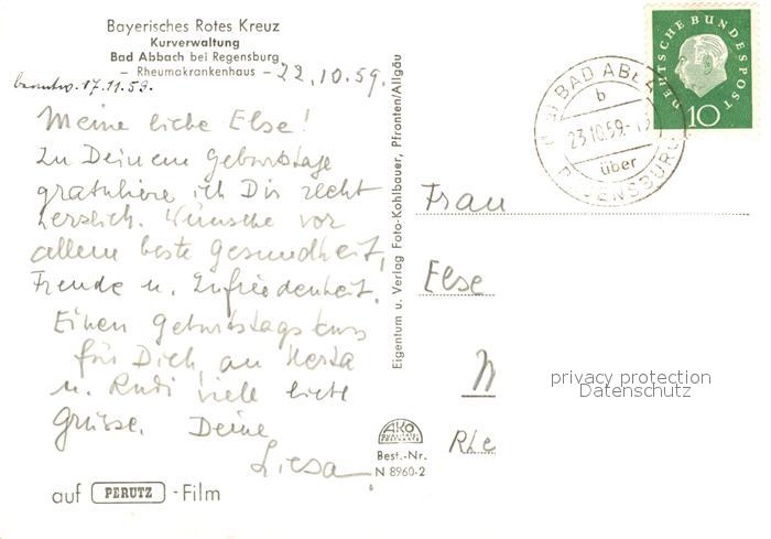 73163065 alte Postkarte Bad Abbach Bayerisches Rotes Kreuz Kurverwaltung postalisch gelaufen Erhaltung siehe scans [WerneD78] KatCode: 11110009273116