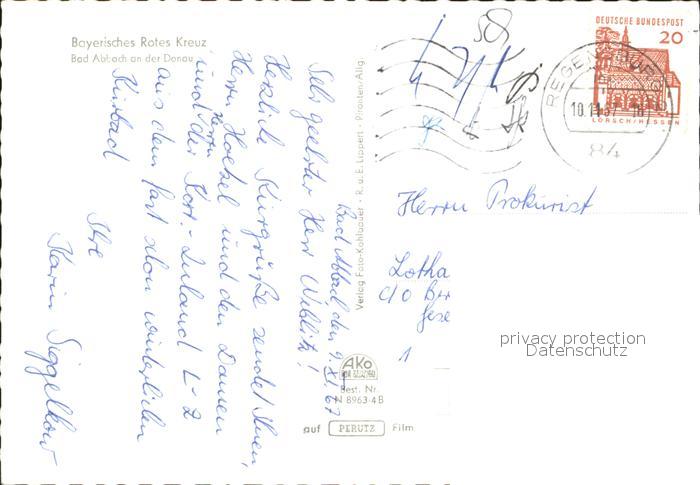 72019082 alte Postkarte Bad Abbach Bayerisches Rotes Kreuz postalisch gelaufen Erhaltung siehe scans KatCode: 11110009273116