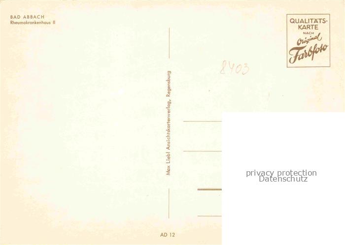 Bad Abbach Bayern Rheumakrankenhaus II postalisch nicht gelaufen Erhaltung siehe scans [WerneD78] Wern Katcode 11110009273116
