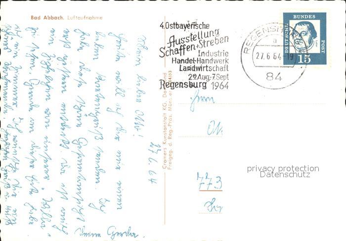 72420391 alte Postkarte Bad Abbach Fliegeraufnahme postalisch gelaufen Erhaltung siehe scans KatCode: 11110009273116