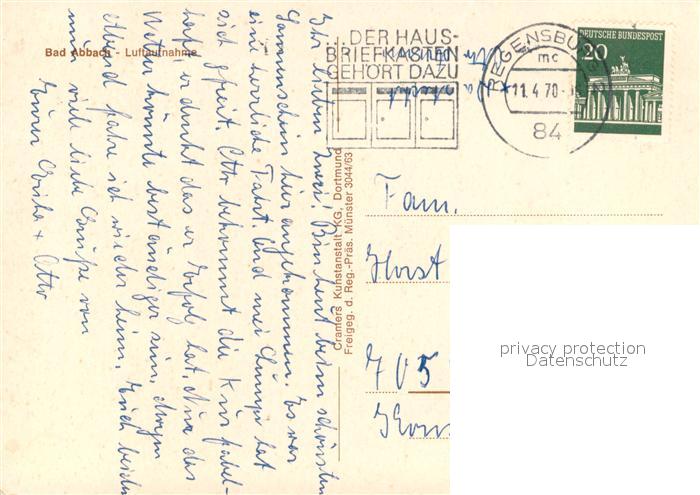 73668269 alte Postkarte Bad Abbach Fliegeraufnahme postalisch gelaufen Erhaltung siehe scans [WerneD78] KatCode: 11110009273116