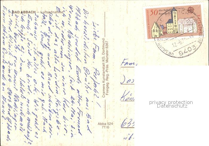 alte Postkarte Bad Abbach Fliegeraufnahme postalisch gelaufen Erhaltung siehe scans