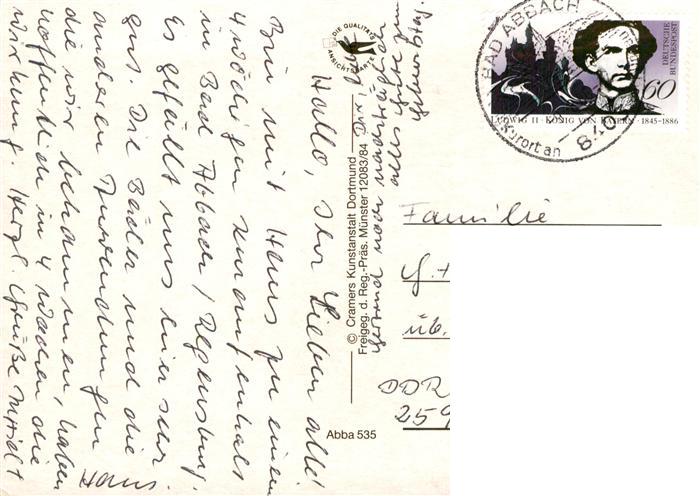 73904484 alte Postkarte Bad Abbach Fliegeraufnahme postalisch gelaufen Erhaltung siehe scans [WerneD78] KatCode: 11110009273116