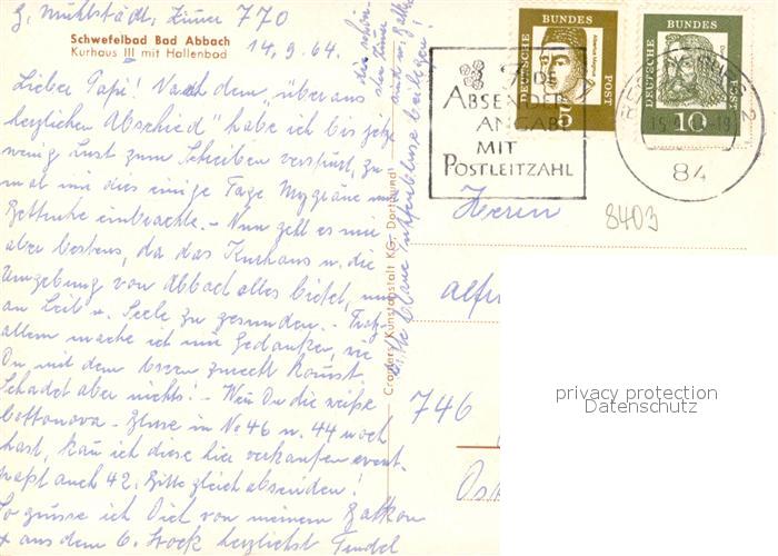 73165674 alte Postkarte Bad Abbach Kurhaus III mit Hallenbad postalisch gelaufen Erhaltung siehe scans [WerneD78] KatCode: 11110009273116