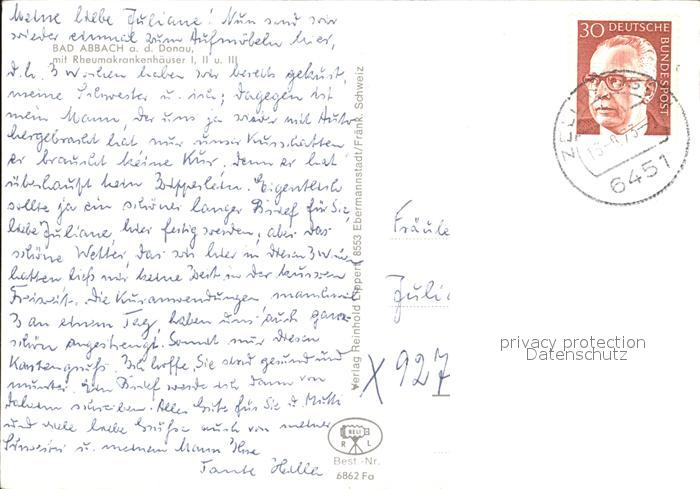 72423963 alte Postkarte Bad Abbach Panorama Donau mit Rheumakrankenhaeusern postalisch gelaufen Erhaltung siehe scans KatCode: 11110009273116