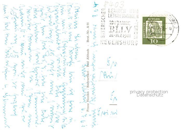 73829082 alte Postkarte Bad Abbach Panorama Rheumakrankenhaus I und II Haus Waldfrieden it Hartlhof Kuranlagen postalisch gelaufen Erhaltung siehe scans [WerneD78] KatCode: 11110009273116