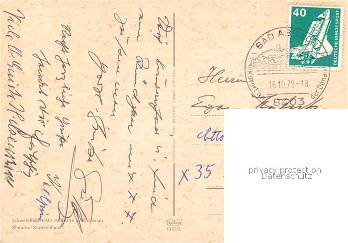 72935261 alte Postkarte Bad Abbach Rheuma-Krankenhaus postalisch gelaufen Erhaltung siehe scans [LiesaD40] KatCode: 11110009273116