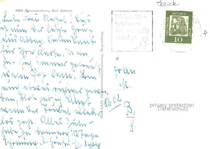 72894599 alte Postkarte Bad Abbach Rheumakrankenhaus postalisch gelaufen Erhaltung siehe scans [KathaD81] KatCode: 11110009273116
