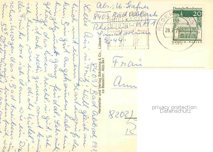 72739728 alte Postkarte Bad Abbach Rheumakrankenhaus Donaupartie Haus-Waldfrieden postalisch gelaufen Erhaltung siehe scans [LiesaD40] KatCode: 11110009273116