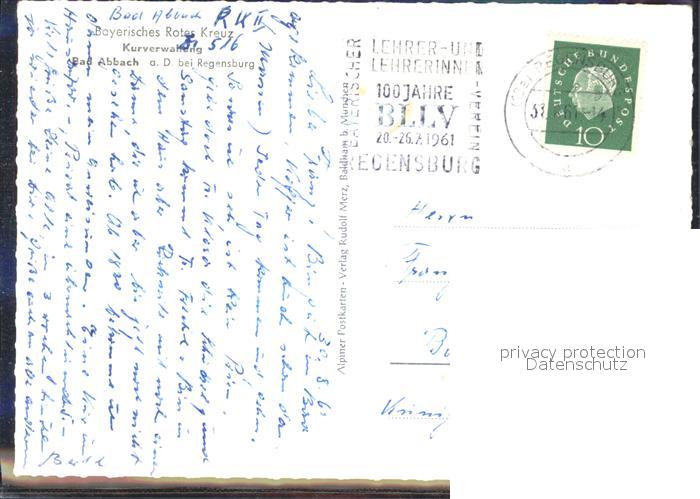 72143763 alte Postkarte Bad Abbach Rheumakrankenhaus Haus-Waldfrieden postalisch gelaufen Erhaltung siehe scans KatCode: 11110009273116