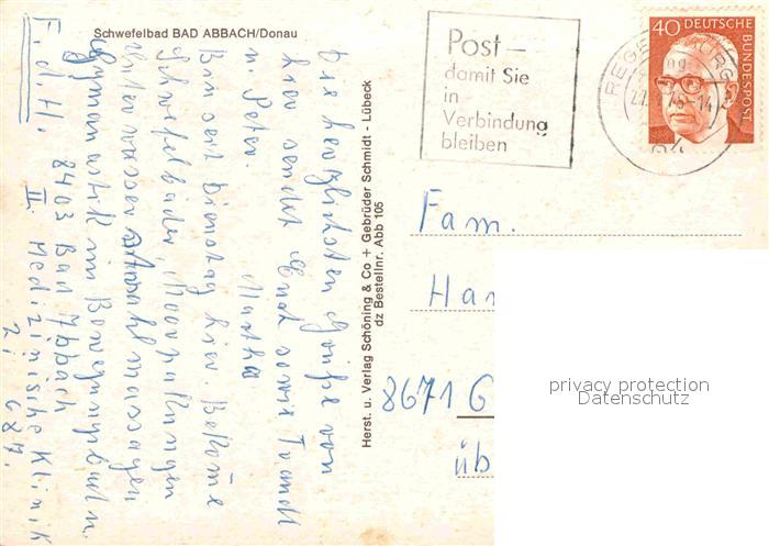 72899981 alte Postkarte Bad Abbach Teilansicht postalisch gelaufen Erhaltung siehe scans [NatalD47] KatCode: 11110009273116