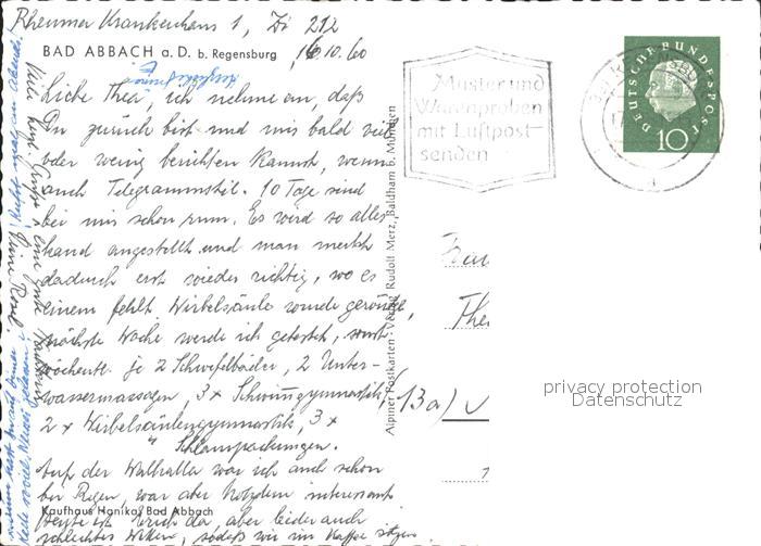 72201001 alte Postkarte Bad Abbach Total Rheumakrankenhaus I und II Quelle Haus Waldfrieden Harthof postalisch gelaufen Erhaltung siehe scans KatCode: 11110009273116