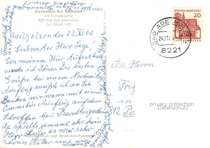 72828677 alte Postkarte Bad Adelholzen Oberbayern Krankenhaus Primuskapelle postalisch gelaufen Erhaltung siehe scans [NatalD47] KatCode: 11110009189145