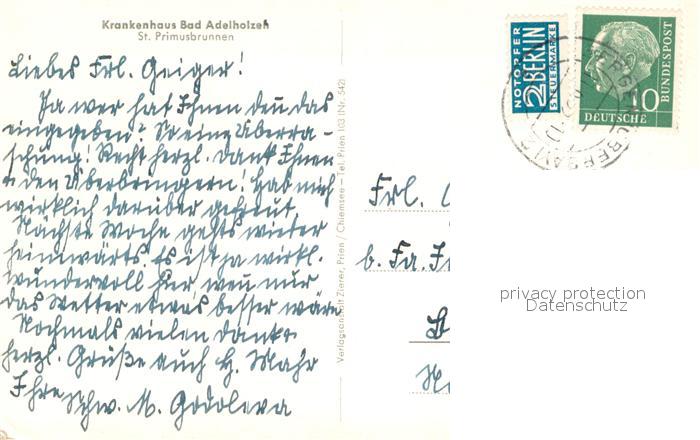 73647489 alte Postkarte Bad Adelholzen Oberbayern Krankenhaus St Primusbrunnen postalisch gelaufen Erhaltung siehe scans [WerneD78] KatCode: 11110009189145