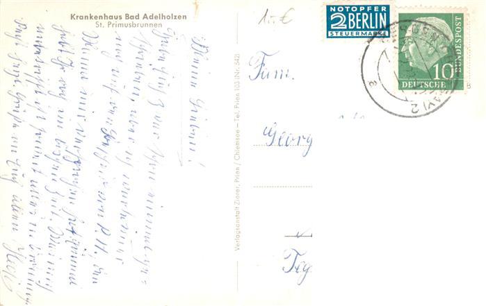 73943540 alte Postkarte Bad Adelholzen Oberbayern Krankenhaus St Primusbrunnen postalisch gelaufen Erhaltung siehe scans [WerneD78] KatCode: 11110009189145