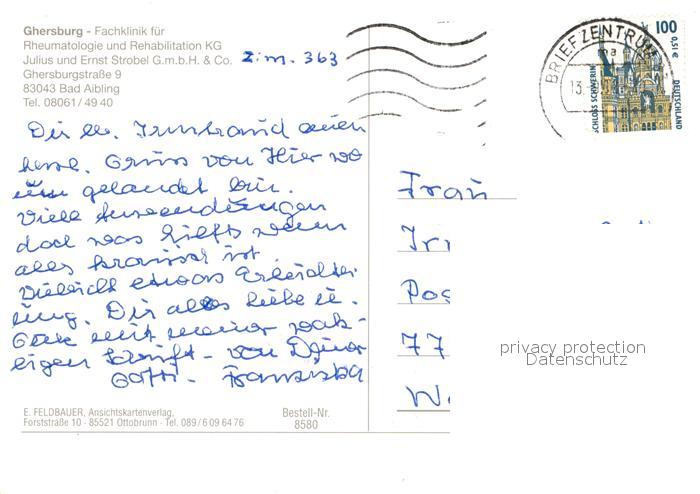 73542429 alte Postkarte Bad Aibling Ghersburg Fachklinik fuer Rheumatologe postalisch gelaufen Erhaltung siehe scans [KathaD81] KatCode: 11110009187117