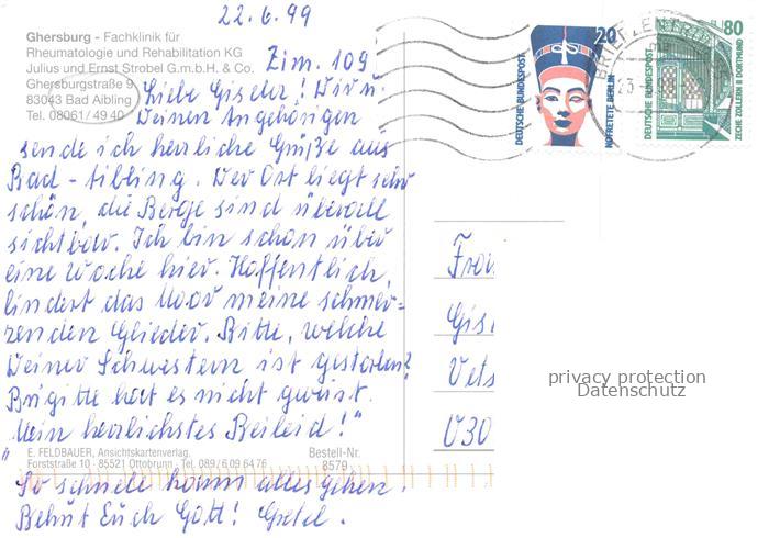 74095600 alte Postkarte BAD AIBLING Ghersburg Fachklinik Gastraeume Terrasse postalisch gelaufen Erhaltung siehe scans [WerneD78] KatCode: 11110009187117